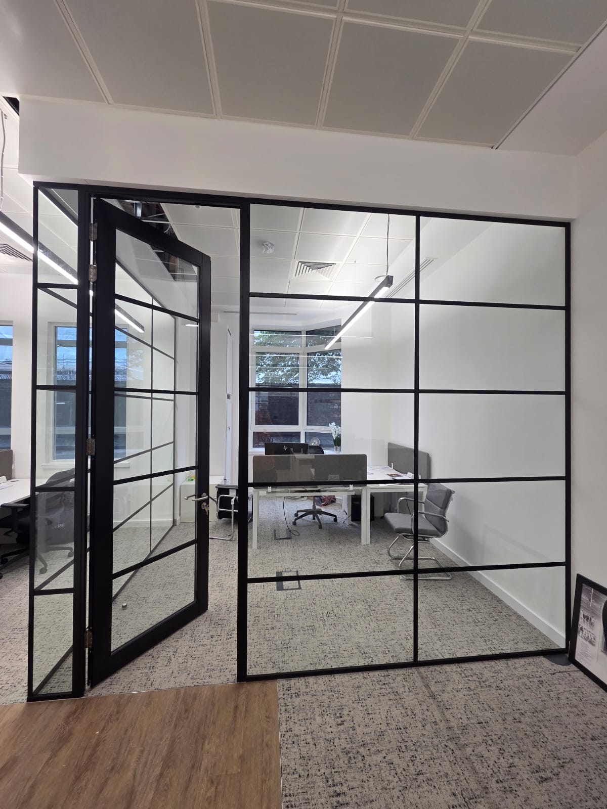 Client Brief: Tasked with reconfiguring and expanding a Central London office, BGS Limited was commissioned to create new glazed partitions that seamlessly matched the existing interior layout. The client required a consistent design language across new and existing rooms, with a clean, modern aesthetic.